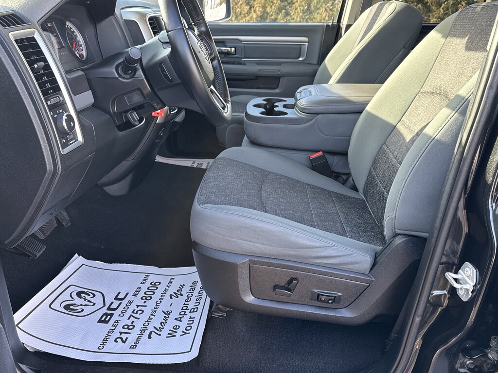 - BRILLIANT BLACK CRYSTAL PEARLCOAT,GVWR: 6 900 LBS,3.21 REAR AXLE RATIO (STD),RADIO: UCONNECT 8.4A AM/FM/SXM/BT -inc: 6 Month Trial (Reg Required) Media Hub (SD USB AUX) For Details Go To DriveUconnect.com 6 Mo Trial (Registration Required) Remote SD Card Slot Harman Radio Manufacturer Uconnect Access 8.4 Touch Screen Display Nav-Capable! See Dealer for Details,REMOTE START & SECURITY GROUP -inc: Remote Start System Security Alarm,DIESEL GRAY/BLACK PREMIUM CLOTH 40/20/40 BENCH SEAT -inc: Power Lumbar Adjust 115V Auxiliary Power Outlet Front Center Seat Cushion Storage Rear 60/40 Split Folding Seat Folding Flat Load Floor Storage Power 10-Way Driver Seat,TRANSMISSION: 8-SPEED AUTOMATIC 8HP70,PARKSENSE FRONT/REAR PARK ASSIST SYSTEM,WHEELS: 17 X 7 ALUMINUM CHROME CLAD -inc: Tires: P265/70R17 OWL AS,ENGINE: 5.7L V8 HEMI MDS VVT -inc: GVWR: 6 900 lbs Electronically Controlled Throttle Heavy Duty Engine Cooling Next Generation Engine Controller Hemi Badge Heavy Duty Transmission Oil Cooler,QUICK ORDER PACKAGE 26Z BIG HORN -inc: Engine: 5.7L V8 HEMI MDS VVT Transmission: 8-Speed Automatic 8HP70 Full Size Temporary Use Spare Tire Leather Wrapped Steering Wheel Steering Wheel Mounted Audio Controls Bright/Bright Billets Grille Locking Lug Nuts Big Horn Regional Package Electric Shift On Demand Transfer Case Big Horn Badge,REAR CAMERA & PARK ASSIST GROUP -inc: ParkView Rear Back-Up Camera ParkSense Front/Rear Park Assist System,PARKVIEW REAR BACK-UP CAMERA,Four Wheel Drive,Tow Hitch,Power Steering,ABS,4-Wheel Disc Brakes,Brake Assist,Chrome Wheels,Tires - Front All-Season,Tires - Rear All-Season,Conventional Spare Tire,Power Mirror(s),Heated Mirrors,Intermittent Wipers,Variable Speed Intermittent Wipers,Privacy Glass,Power Door Locks,Automatic Headlights,Fog Lamps,AM/FM Stereo,Satellite Radio,MP3 Capability,Bluetooth Connection,Auxiliary Audio Input,Requires Subscription,Bluetooth Connection,Satellite Radio,Requires Subscription,Rear Bench Seat,Adjustable Steering Wheel,Trip Computer,Power Windows,Keyless Entry,Power Door Locks,Cruise Control,A/C,Passenger Vanity Mirror,Floor Mats,Split Bench Seat,Power Door Locks,Power Windows,Trip Computer,Immobilizer,Traction Control,Stability Control,Traction Control,Front Side Air Bag,Tire Pressure Monitor,Driver Air Bag,Passenger Air Bag,Passenger Air Bag Sensor,Front Head Air Bag,Rear Head Air Bag,Child Safety Locks